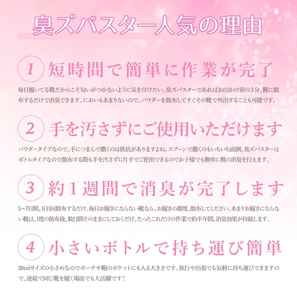 If it is a smell buster, it can be deodorized just by scattering it on shoes for 3 minutes before going out.