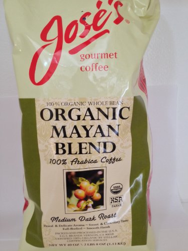 Jose's Whole Bean Coffee, 2lb 8 oz/40 oz 100% Certified USDA Organic Mayan Blend 100% Arabica Coffee