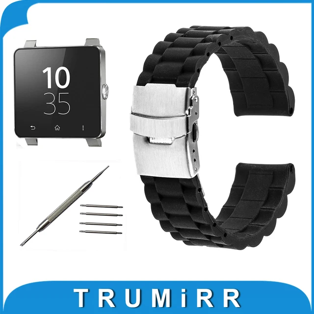 | [해외] 24 미리메터 실리콘 고무 손목 sony smartwatch 2 sw2 교체 밴드 3 포인터 수지 스트랩 스테인레스 스틸 버클 팔찌 |