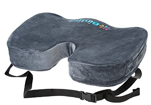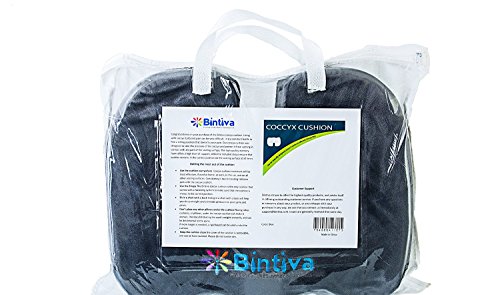 -. Feature : Crafted from real memory foam, the Bintiva coccyx cushion provides superior relief and comfort. / The built-in, adjustable, strap keeps the cushion in place at all times, making it perfect for use on chairs, in cars, on airplanes, and wheelchairs. / The coccyx cushion is ergonomically designed to provide maximum support and comfort while reducing pressure on the tailbone. / The built-in handle and convenient removable cover makes it one of the most versatile coccyx cushions on the market.