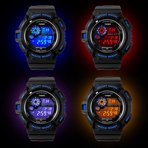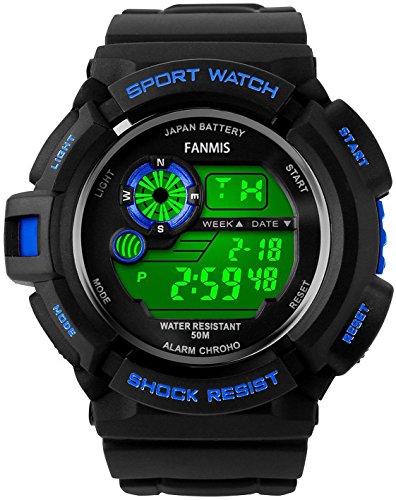 Title : Fanmis Mens Military Multifunction Digital LED Watch Electronic Waterproof Alarm Quartz Sports Watch Blue