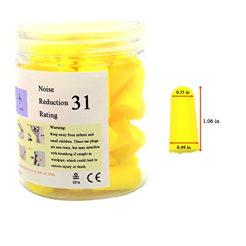 -. Feature : Earplugs With High Noise Reduction Rating (NRR) - 31 decibels. / Extra Soft - These earplugs are made of soft foam that sits comfortably in the ear. Providing unmatched user comfort and hygiene. / High Stretch - Latex included for the best elasticity, and it wouldn't break even be compressed or stretched seriously. / Comfortable Fit - Ear plug foam compresses quickly for easy insertion. Smooth tapered, comfort for small or sensitive ear canals. / Hearing Protection - This earplugs offer hearing protection from sleeping, working, studying and other loud environments.