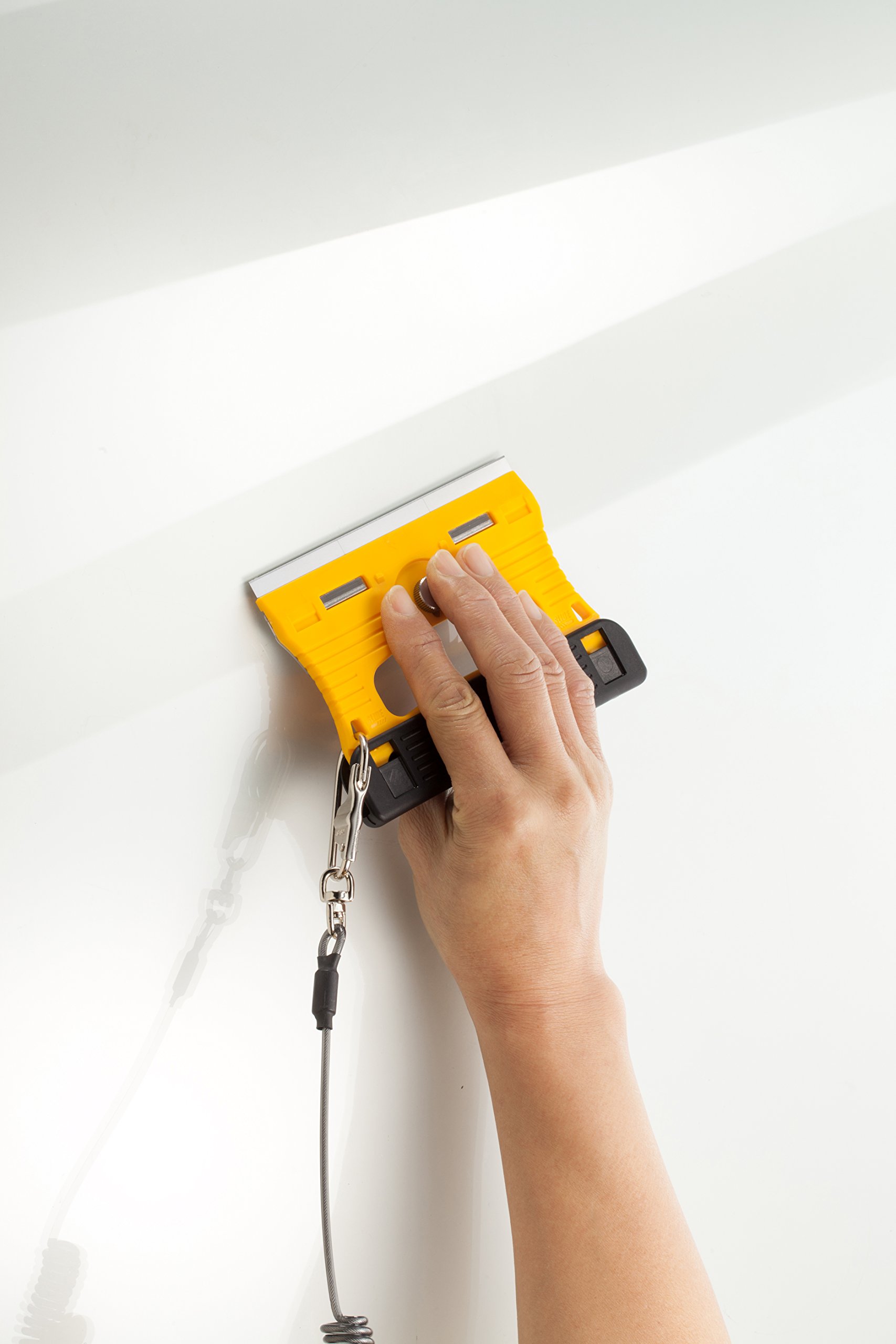 Purchased for about 5 years, because the window thermal insulation sheet which had been stretched tightened deteriorated and it became ragged and could not be removed. While scrubbing the detergent, it was scraped off with G Scrubber and cleaned up. I used G scarper for the first time, but the blade is sharp like a cutter knife. Glass will not be scratched, but if you do not take care, it may hurt the rubber packing of the window frame. I like the compact design.