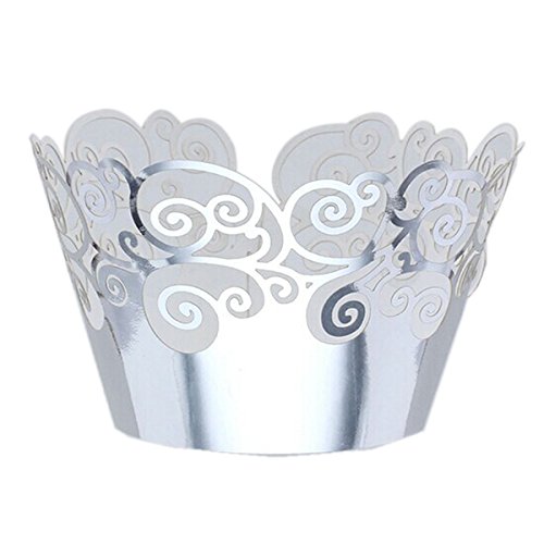 Tinksky Cupcake Wrappers Cupcake Cases Cupcake Holders Muffin Cups for Wedding Baby Shower Party,50pcs(Silver)