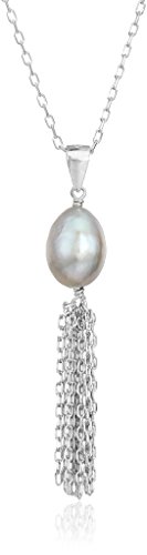-. Title : Rhodium Plated Sterling Silver Pearl 7-7.5mm Tassel Pendant Necklace, 18"