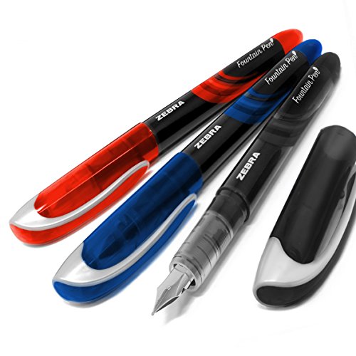 -. Feature : With their sleek and modern design, the Fuente is the perfect choice for school, college, or the office. / Zebra's innovative ink-delivery system provides fluid and consistent flow whilst writing. / The 0.6mm stainless steel nib delivers up to a 1mm line, dependent upon pressure applied. / The water-based ink used in each pen delivers superb colour transfer with each line.The water-based ink used in each pen delivers superb colour transfer with each line. / Pack contains one of each of the following coloured inked fountain pens: Black, Blue, and Red.