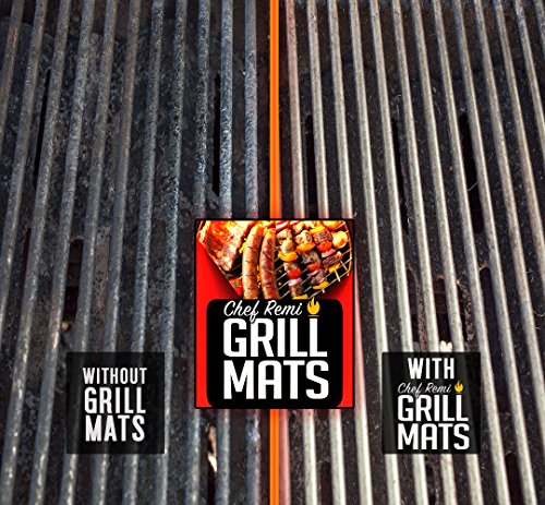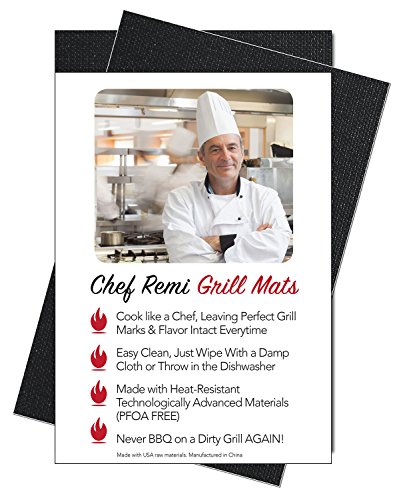 -. Feature : LIFETIME GUARANTEE - The Chef Remi BBQ Grill Mat comes with full usage instructions and a 100% Money-Back Lifetime Guarantee. You won't get this lifetime guarantee from the big brands. / NEVER BBQ ON A DIRTY GRILL AGAIN - Simply lay the Non Stick BBQ Grill Mats over the grate, griddle or burner and place your chicken, steak, fish, bacon, eggs, burgers, vegetables, pizza, ribs, turkey, kebabs or whatever you wish to grill directly on the mat. Throw away that old barbecue grill brush. / BBQ LIKE A PRO - Leaves perfect grill marks and flavor intact every time while preventing any of your deliciously prepared food falling through the grates. You'll be seen as the 'Backyard Grillmaster' of your neighborhood. / PERFECTLY SAFE - Made with Heat-Resistant technologically commercial advanced materials (PFOA Free), these nonstick cooking accessories will work time and time again for the perfectly cooked BBQ. / EASIEST GRILL CLEANUP EVER! - Whether your use our grate covers on gas, charcoal, electric, propane, natural gas grills/smokers or even open fire pits, our award winning barbecue mats will clean up instantly. Completely dishwasher safe, simply allow the grill mat to cool, wipe over with a damp cloth and lay flat on the top rack of your dishwasher.