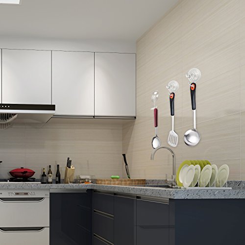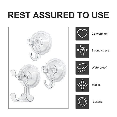 【Wide Range of Application】Suction works best on ceramic tile, glass, mirror, granite, stainless steel, acrylic, laminate and any non-porous surface with glossy finish. (Please install the hook at the room temperature due to the cold weather, or you can put it in warm water to soften the suction cup.)