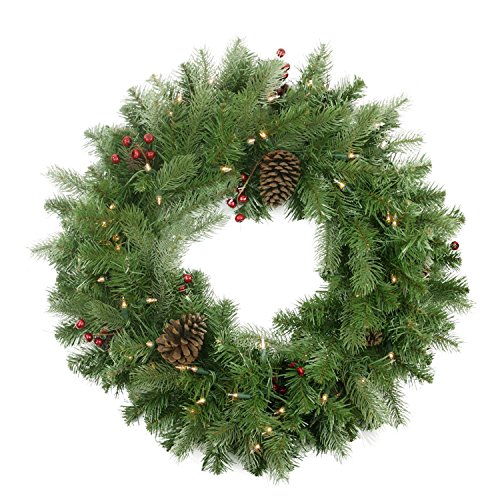 Northlight 24" Pre-lit Noble Fir with Red Berries and Pine Cones Artificial Christmas Wreath - Clear Lights