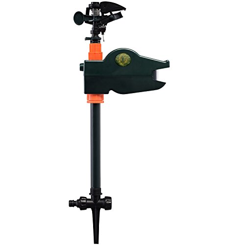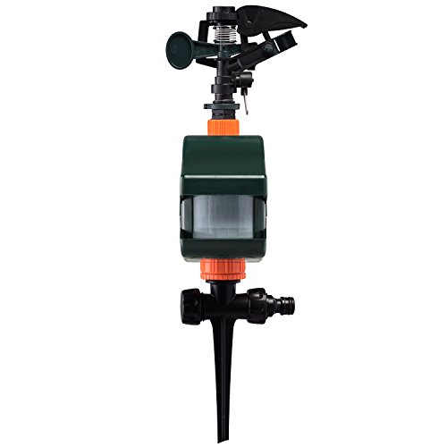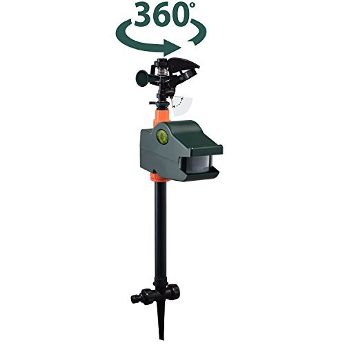 -. Feature : POWERFUL & EFFECTIVE - The Hoont™ Water Jet Blaster Animal Repeller sprays a powerful yet harmless jet of water as soon as it detects an animal invading your property. Scares away all animals, such as cats, dogs, squirrels, skunks, deer, wild animals, birds, etc. Animals are startled and quickly leave the area and will avoid the area in the future. / EASY SET UP & ADJUSTABLE - Very easy to set up. Choose the area where animals are roaming, insert the unit into the ground using the provided stake and connect to a garden hose. As soon as a pest animal is detected by the motion sensor, a powerful blast of water is sprayed to scare the pest away. / LOW WATER CONSUMPTION - When the built-in sensor detects movement within a range of up to 30 feet, the jet of water is activated for approximately 5 seconds. Animals are frightened by this jet of water and immediately leave the monitored area. / 100% HUMANE & SAFE FOR YOU AND YOUR PETS - The Hoont™ Water Jet Blaster Animal Repeller is the most humane method for keeping animals and pests out of your property. It doesn't kill or harm the animals; it just sprays them with an annoying squirt of water, thus forcing them to leave the area. / SPECIFICATIONS - Requires 4 "AA" batteries (Batteries not included) / Motion sensor detection range up to 30 ft. / Detection angle: Approx. 120° / Water spraying angle: 360° (adjustable) / Monitored area: Approx. 650 sq. ft. / Effective during day and night.