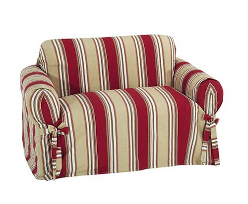 -. Title : Classic Slipcovers P.R.Inted Classic Stripe Canvas Loveseat Slipcover, Red