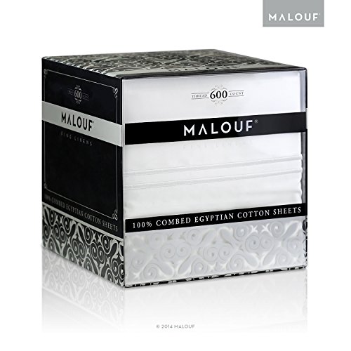 MALOUF 600 Thread Count Pillowcase Set - Genuine Egyptian Cotton - Queen - Ivory - Set of 2