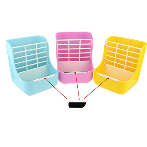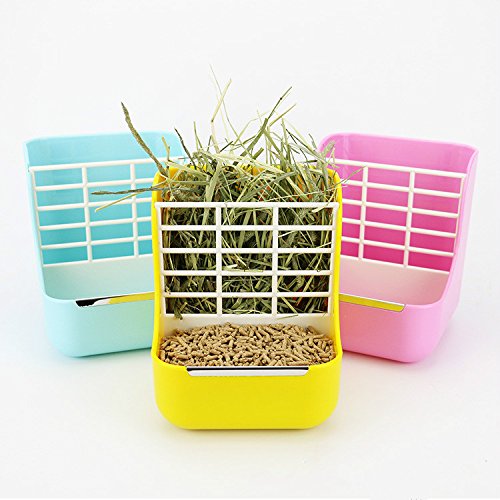 The Uligota hay feeder is aim to creat more convenience and enjoyment for you and your lovely pet.The Hay feeder can provide your small pet with hay, alfalfa and other grasses. ?-Ideal for rabbits, chinchillas, guinea pigs or other small animals ?-Made of Material:Antibacterial ABS material Stainless steel,avoid pet bitting it,durable and last long?-Large combo bin feeder dispenses hay and food without the mess ?-Keep a generous supply of food and hay in a clean, organized bin style feeder Package ?-Color:blue/yellow/pink Caution:the bowl back lock hole diameter approx 0.1 inch ,please check your cage size whether it fits or not 0