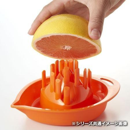 | 剣山状の特殊なしぼり構造により、グレープフルーツなどの柑橘を回転させながら軽く押し込むだけで、たっぷり果汁が絞れます。グレープフルーツ・オレンジジュースなどジューサーとしても使用できます。 |