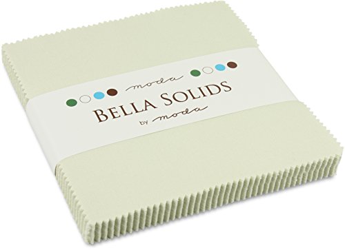 - Includes 42 fabric squares from the Moda Bella Solids Porcelain 9900-182 colorway; neatly stacked and secured with a paper strap