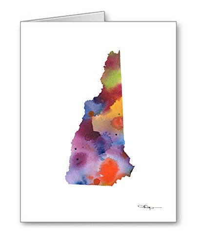 -. Feature : "New Hampshire" artwork by watercolor artist DJ Rogers. / Note card size is 4.25 x 5.5 inches / Matching white envelopes included. / Note cards are blank inside for your personal message. / Suitable for framing.