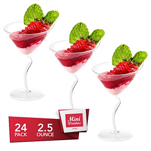 --TREAT, TANTALIZE AND TEMPT!!!! -- Desserts in a mini wine goblet - who could resist! They are SO tiny, SO cute, and SO classy. There's something really special about serving dessert shooters that makes them SO much more fun than full-sized treats. Plus, shot glass desserts make it okay for you to have more than one serving of dessert. (YESSSS!) Samples and small portions served in our Elegant Stem Cups will accomplish just that!!!! These elegant wine glasses add a stunning touch of class to any food presentation! The glass-like look gives these mini wine goblets the character they need to present your culinary delights with even more style. Standing on a pedestal, elegantly ready to be held, this cup will move your event in the right direction!! They can be used for desserts, appetizers, hors d'oeuvres, beverages, or anything else that requires an elegant presentation. Each one of these martini glasses can be disposed of or washed and re-used as many times as you would like!