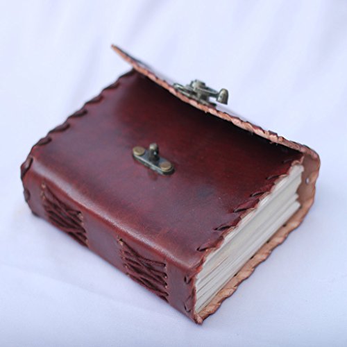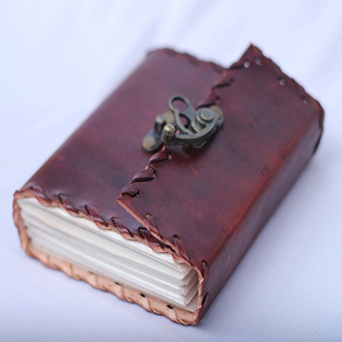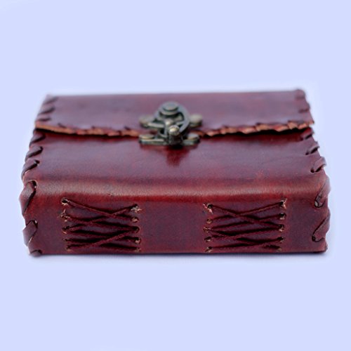 - Feature : Small Pocket Size Journal. / Made with Naturally Processed Leather. / Dimensions: 5 Inch X 4 Inch / Vintage look Bronze lock. / Hand Stitched.