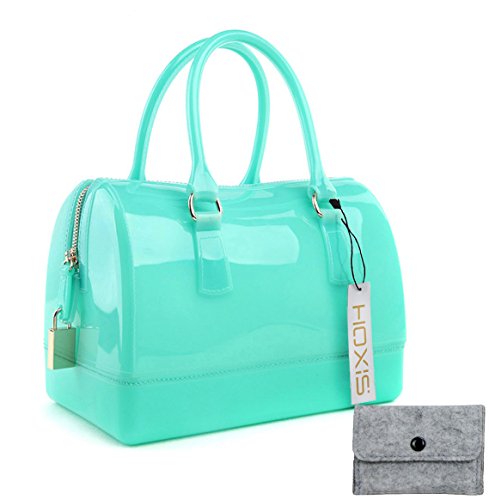 -. Brand : Hoxis -. Department : womens -. Feature : Summer candy color,refreshing shining handbag / Small Size,Not fit for A4;Approximate Dimensions:L10.2"*W4.4"*H7"(L26cm*W15cm*H18cm) & Handle Drop - 4" / Made with High-quality Rubber&Silicone,Waterproof and fireproof / Due to monitor variations colors may appear slightly different, Please allow a little color difference. / ****BUY ONE GET ONE HOXIS GIFT COIN PURSE**** -. Model : HX-BG-1467 -. PackageQuantity : 1 -. ProductGroup : Shoes -. ProductTypeName : HANDBAG -. Size : Small -. Title : Hoxis Glamorous Doctors Style Mini Satchel Candy Hand Bag