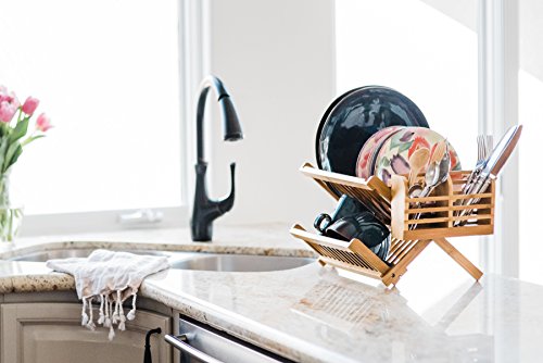 Totally Bamboo Premium Collapsible Dish Drying Rack, EXTRA LARGE Capacity for Maximum Storage & Saving Precious Counter Space. Beautiful & Durable drying rack 100% Bamboo, 19" by 18" by 10" high