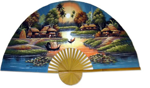 Large 60" Folding Wall Fan -- Land of the Enchanted -- Original Hand-painted Wall Art