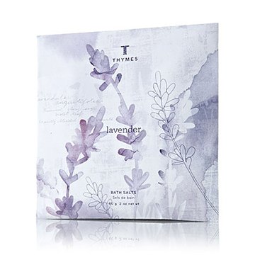-. Binding : Health and Beauty -. Brand : Thymes -. Color : Lavender -. EAN : 0637666015248 -. Feature : Relaxation... a gift we give to ourselves, and pass on to one-another. Brought about by a soothing soak in mineral-rich bath salts infused with the comforting essence of Thymes Lavender. / Fragrance: A composition of soft, velvet lavender blended with the warmth of rosewood, clary sage and violet leaf / Moisturizing jojoba oil; Soothing aloe vera; Hydrating honey; Paraben free / 2 oz net wt / 60 g -. Label : The Thymes -. Manufacturer : The Thymes -. Model : 04900040110 -. MPN : 37046 -. NumberOfItems : 1 -. PackageQuantity : 1 -. PartNumber : 37046 -. ProductGroup : Beauty -. ProductTypeName : BEAUTY -. Publisher : The Thymes -. Size : 2 Ounces -. Studio : The Thymes -. Title : The Thymes Lavender Bath Salts Packet - 2 oz. -. UPC : 637666015248