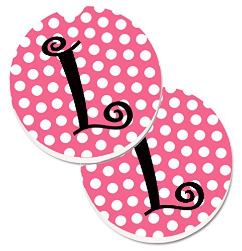 Caroline's Treasures Letter L Monogram - Pink black Polka Dots Set of 2 Cup Holder Car Coasters CJ1001-LCARC, 2.56, Multicolor