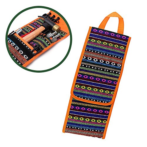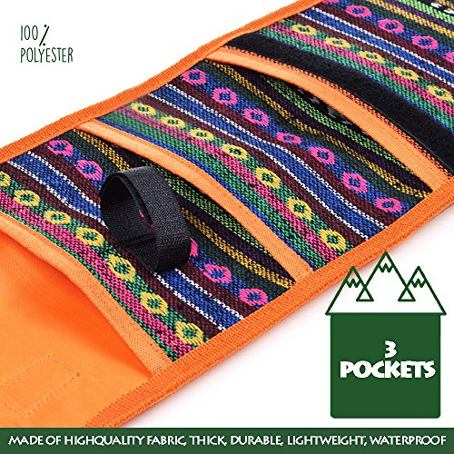 Handy Tool Bag | Portable Outdoor Nail Tent Stakes Tool Storage Bag Case Pouch for Convenient Hammer Peg Camping Accessoris | Foldable Design for Easy Carrying | Orange with National Wind Pattern