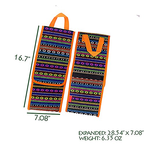 - --- BRILLIANT FOLDABLE DESIGN FOR EASY CARRYING --- It comes with two velcro straps/belts and can be folded to 16.73” x 7.08”, and can be expanded to 28.54” x 7.08”. The handle allows the bag to be hung anywhere.
