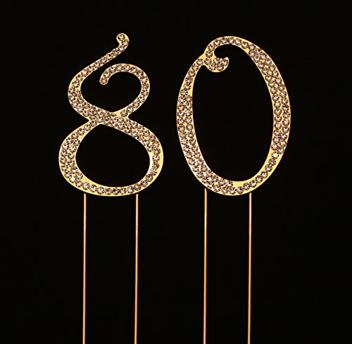 - MULTIPLE USES AND A KEEPSAKE: Use this as a cake topper for 80th birthday or anniversary, a centerpiece, part of a floral arrangement or place setting. Remove the metal prongs after the party and save this as a keepsake. This is a must have bling cake topper for your birthday or anniversary party decoration.