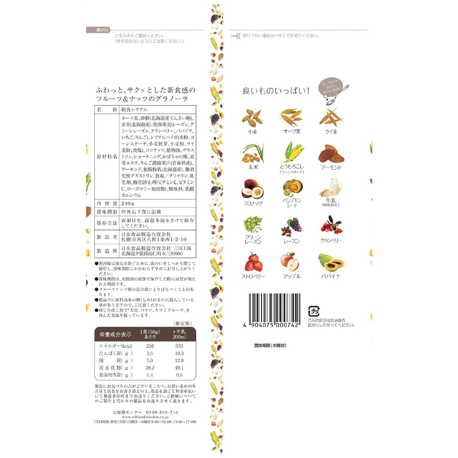It is a fruit granola with a new texture with blended 5 cereals, 6 kinds of fruits, 3 kinds of nuts, crispy while fluffy.