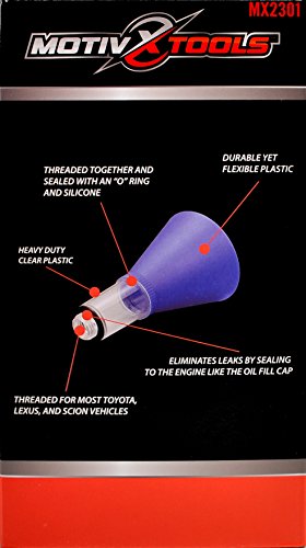 Motivx Tools Engine Oil Funnel for Toyota, Lexus, and Scion Vehicles with Threaded Oil Filler Caps – Fits Most Camry, Corolla, RAV4, Tacoma, Highlander, Sienna, Tundra, RX350 and Many More