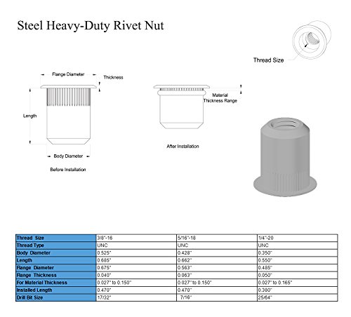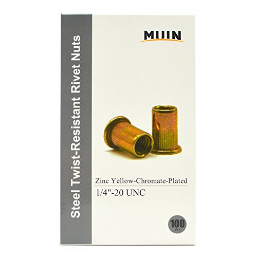 MUIN 100 PCS Zinc Yellow-Chromate-Plated Steel Heavy-Duty Rivet Nut 1/4-20 UNC