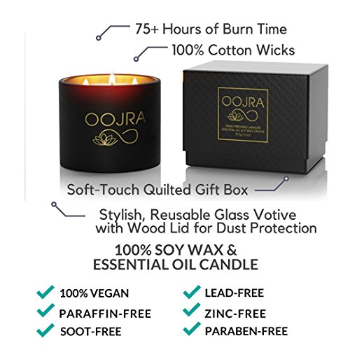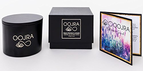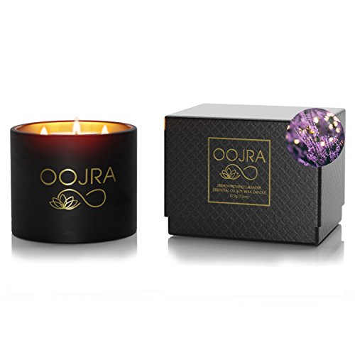 Oojra Essential Oil French Provence Lavender Scented Soy Wax Luxury Candle 3 Wick 13 oz (370g) 75+ hours with Lid and Gift Box