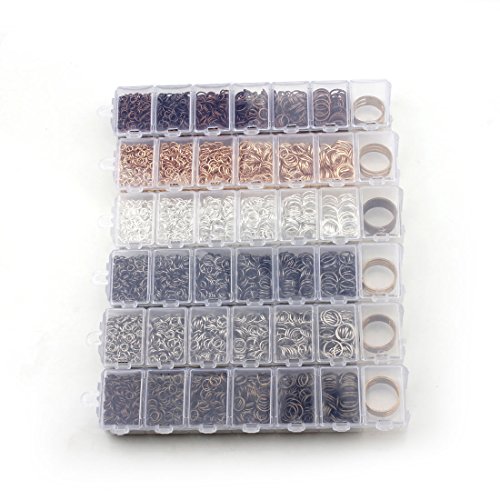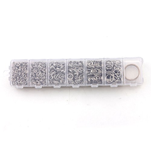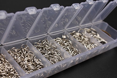 MEIBEADS Rhodium Plated Open Jump Ring 4mm 5mm 6mm 7mm 8mm 10mm about 1500pcs Container Set with Free Jump Ring Open Tool