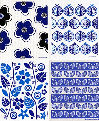 -. Feature : Contemporary Swedish Dish Cloth - Includes 4 / All natural materials: 70% Cellulose & 30% Cotton / Designed in Sweden by Marie Jangneus and made in UK with water based inks / Reusable & 100% biodegradable; Approx 6.75 x 8 inches / Absorbs an amazing 15 times its own weight in water
