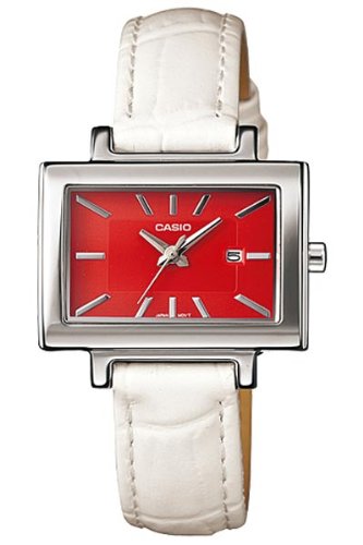-. Title : Casio Women's Core LTP1332L-7A White Leather Quartz Watch with Red Dial