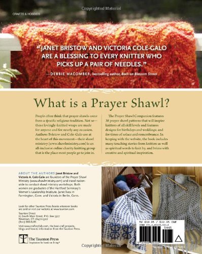 For many, the ultimate expression of spirituality is charity. And for years, people have been crafting prayer shawls - knitted wraps to comfort those in times of need and to help others celebrate special occasions. Written by the two women at the heart of this groundswell of charity knitting, The Prayer Shawl Companion presents 38 wondrous wraps for all occasions, from baptism to remembrance. The book includes easy, intermediate, and challenging patterns for such inspiring creations as The Calming Shawl, and the Friendship Patchwork Shawl, and many more. Since knitting itself can be a gloriously spiritual activity, Bristow and Cole-Galo also offer advice on creating a peaceful creative environment and include heartwarming stories to and from shawl recipients. Professional knitwear designers like Kaffe Fassett and Nicky Epstein have donated more than 10 patterns.Feature