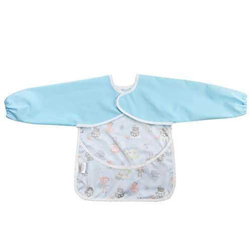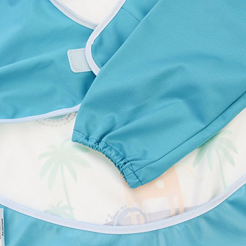 Hi Sprout Unisex Infant Toddler Baby Super Waterproof Sleeved Bib, Reusable Bib with Sleeves& Pocket, Multi Patterns, 12-24 Months,(Dream Dragonfly)