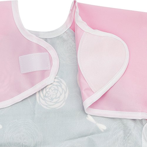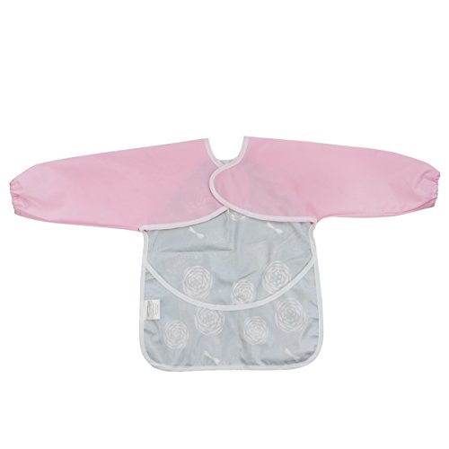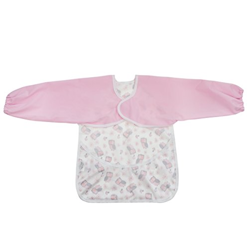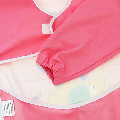 Hi Sprout Unisex Infant Toddler Baby Super Waterproof Sleeved Bib, Reusable Bib with Sleeves& Pocket, 12-24 Months,Pink animals