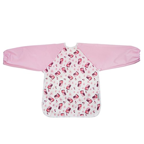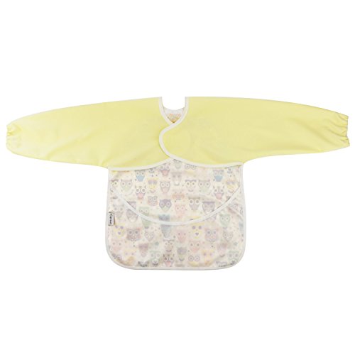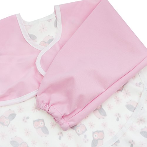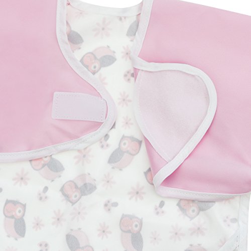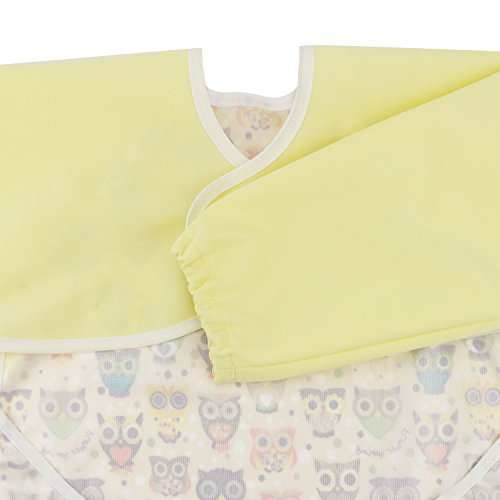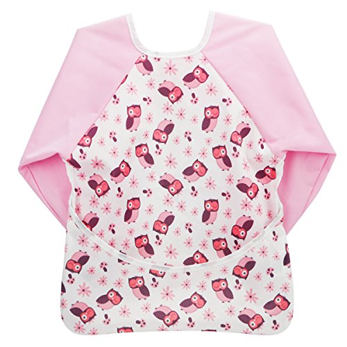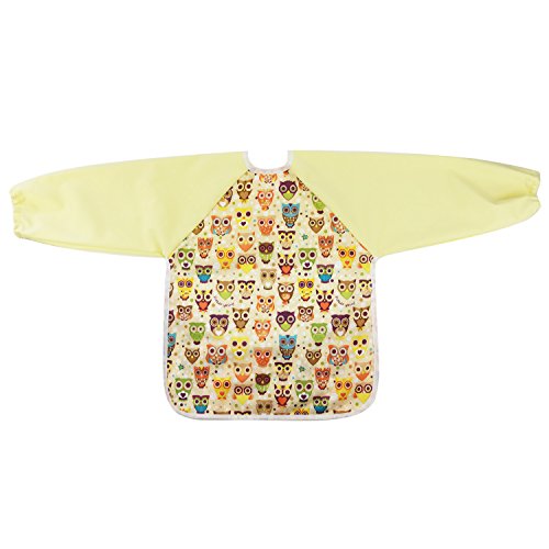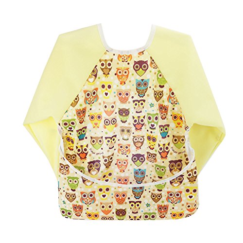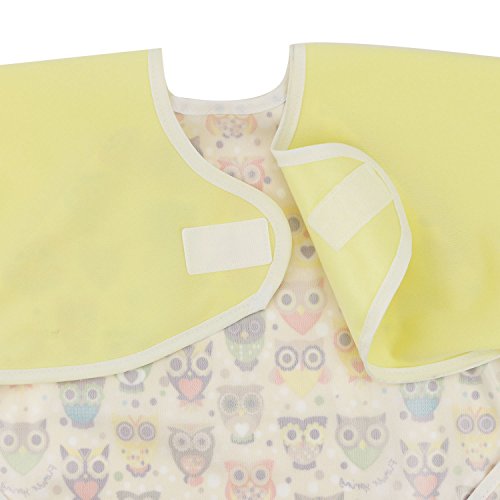 Hi Sprout Unisex Infant Toddler Baby Super Waterproof Sleeved Bib, Reusable Bib with Sleeves& Pocket, Multi Patterns, 12-24 Months (lovely Owl)