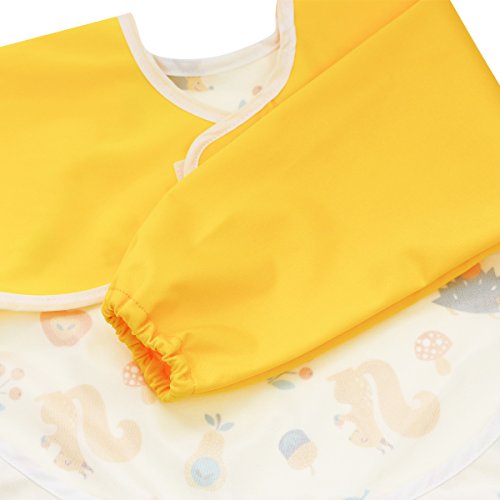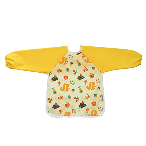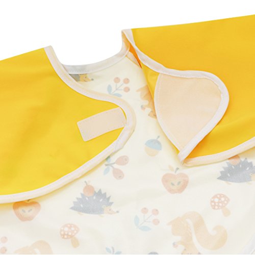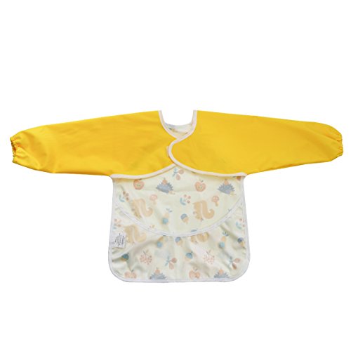 Hi Sprout Unisex Infant Toddler Baby Super Waterproof Sleeved Bib, Reusable Bib with Sleeves& Pocket, 12-24 Months (lovely squirrel)