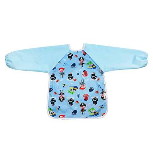 Hi Sprout Infant Toddler Baby Waterproof Sleeved Bib, Bib with Sleeves&Pocket, 12-24 Months (Pirate Captain)