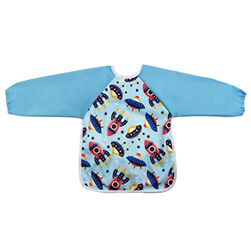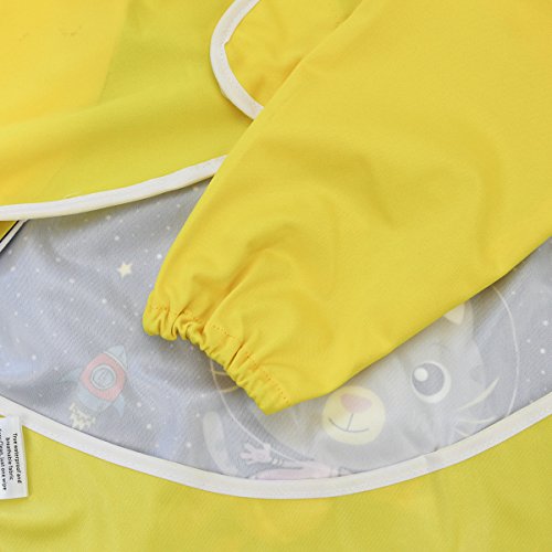 Hi Sprout Unisex Infant Toddler Baby Super Waterproof Sleeved Bib, Reusable Bib with Sleeves& Pocket, Multi Patterns, 6-24 Months (fantastic space )