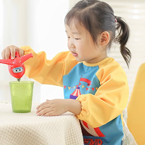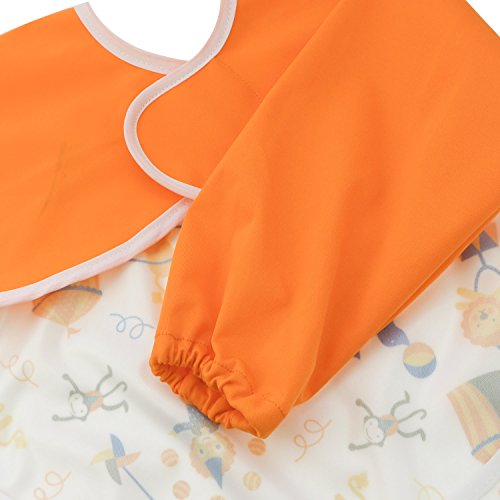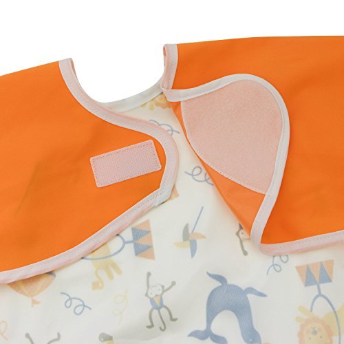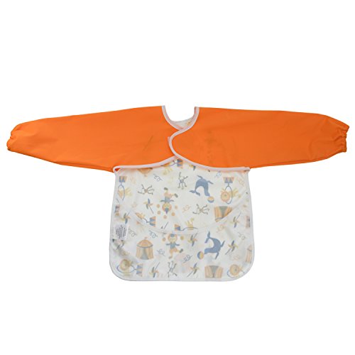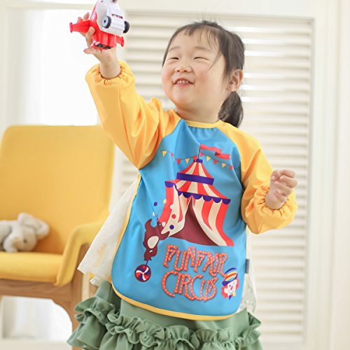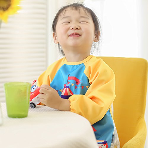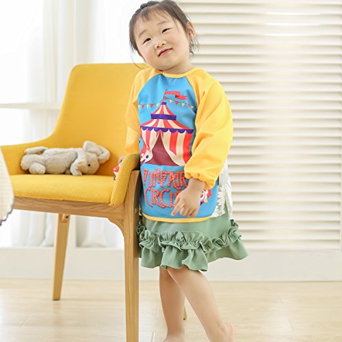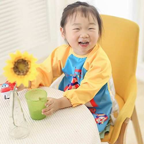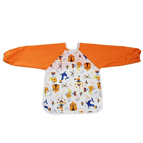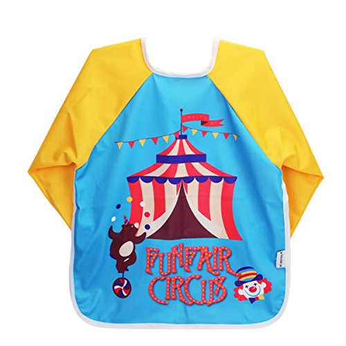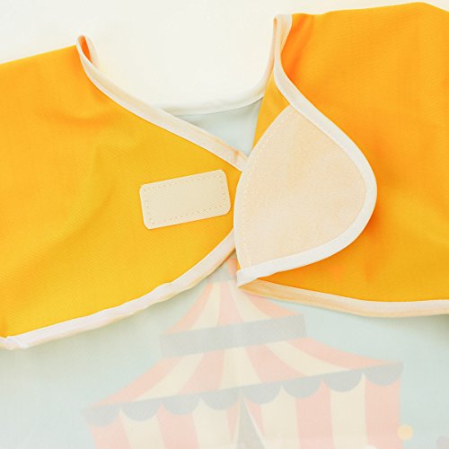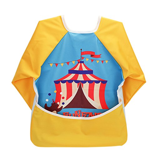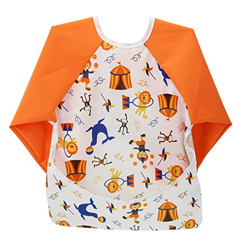 Hi Sprout Unisex Infant Toddler Baby Super Waterproof Sleeved Bib, Reusable Bib with Sleeves& Pocket, Multi Patterns, 6-24 Months,(Happy Circus)