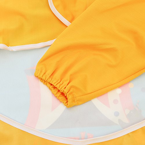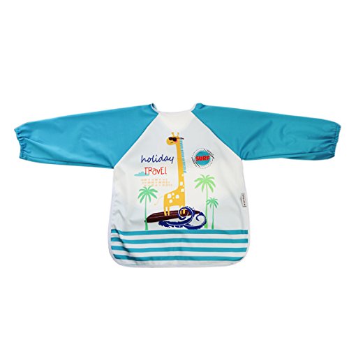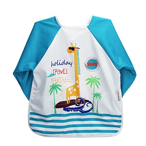 Hi Sprout Unisex Infant Toddler Baby Super Waterproof Sleeved Bib, Reusable Bib with Sleeves& Pocket, 12-24 Months,Giraffe