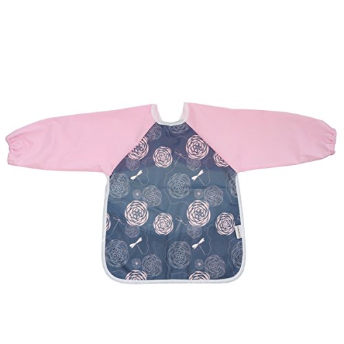 Hi Sprout Unisex Infant Toddler Baby Super Waterproof Sleeved Bib, Reusable Bib with Sleeves& Pocket, 12-24 Months (blooming spring)