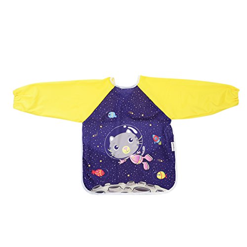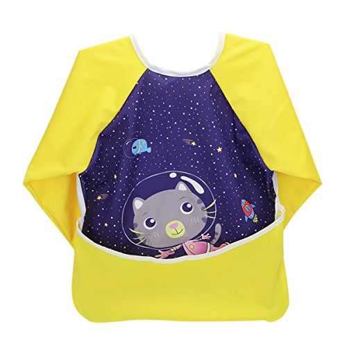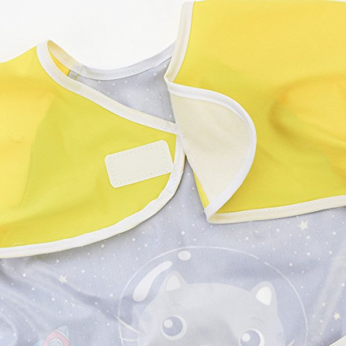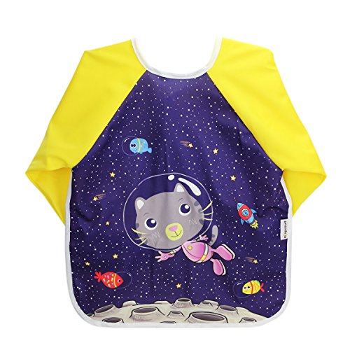 Hi Sprout Unisex Infant Toddler Baby Super Waterproof Sleeved Bib, Reusable Bib with Sleeves& Pocket, 12-24 Months,Space cat