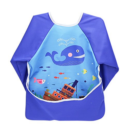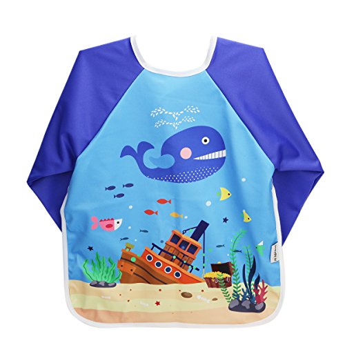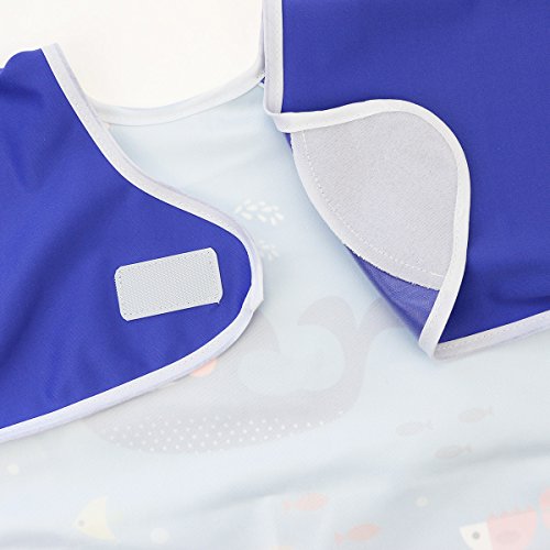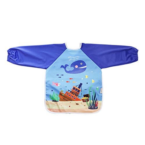 Hi Sprout Unisex Infant Toddler Baby Super Waterproof Sleeved Bib, Reusable Bib with Sleeves& Pocket, 12-24 Months,SeaWorld