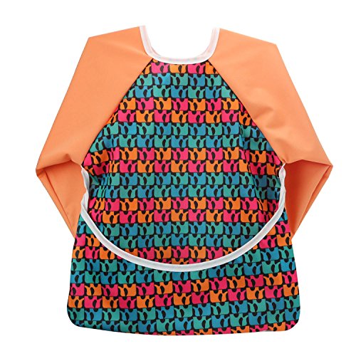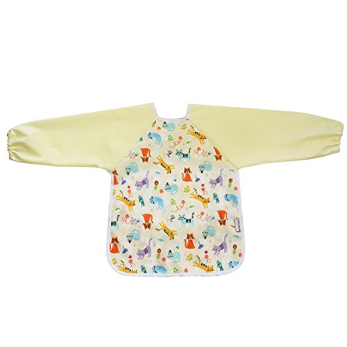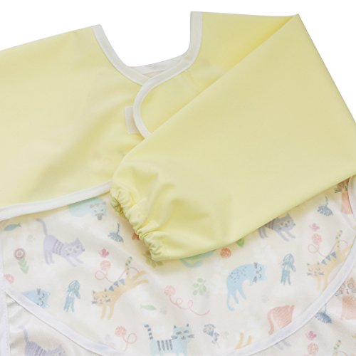Hi Sprout Unisex Infant Toddler Baby Super Waterproof Sleeved Bib, Reusable Bib with Sleeves& Pocket, 12-24 Months (cute cat)